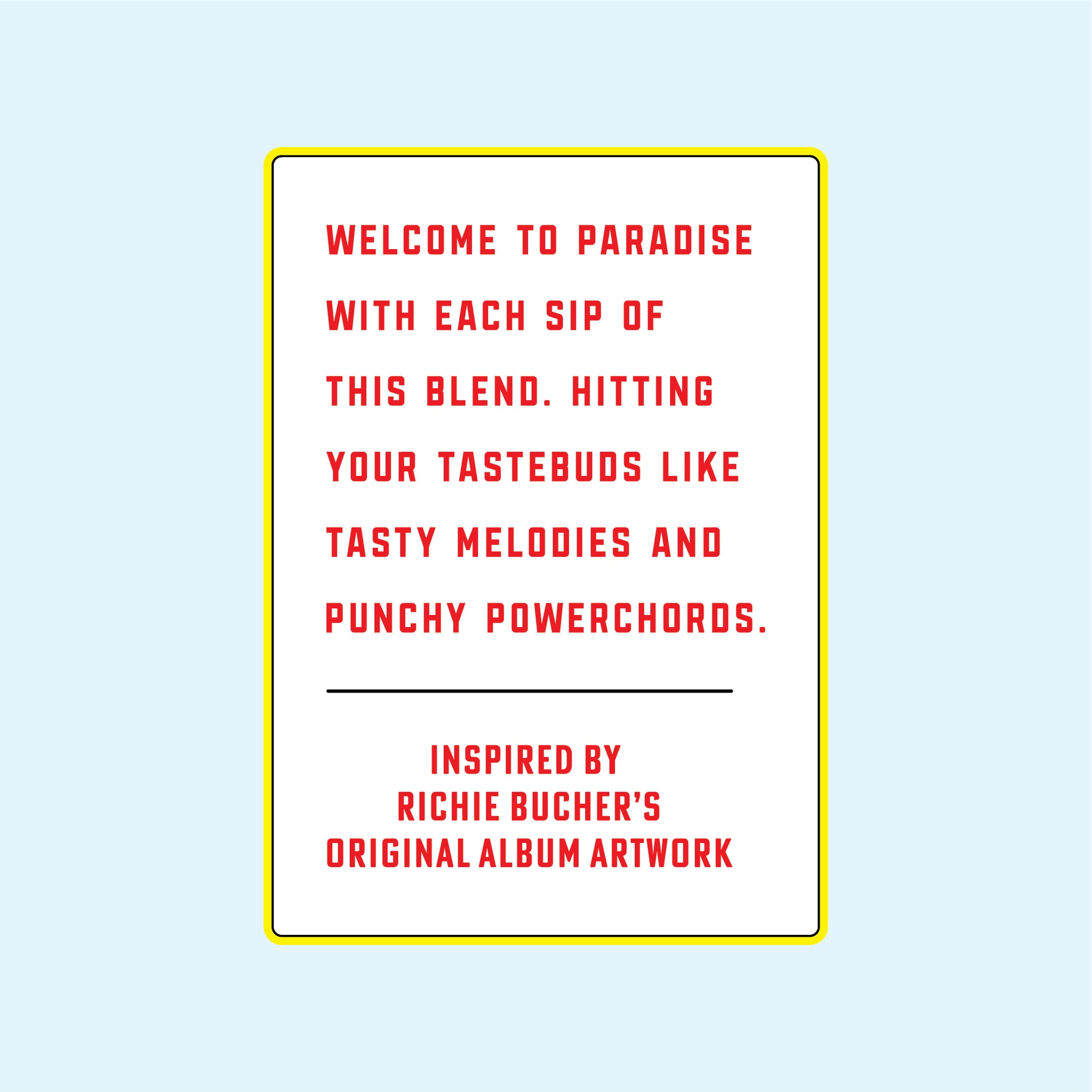 Welcome to paradise with each sip of this blend. Hitting your tastebuds like tasty melodies and punchy powerchords.